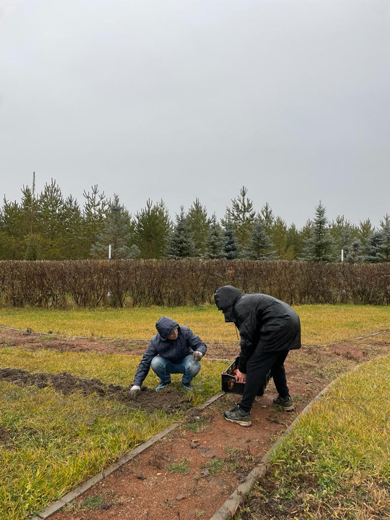 Научные сотрудники лаборатории интродукции цветочно-декоративных растений открытого грунта провели посадку луковиц тюльпанов.