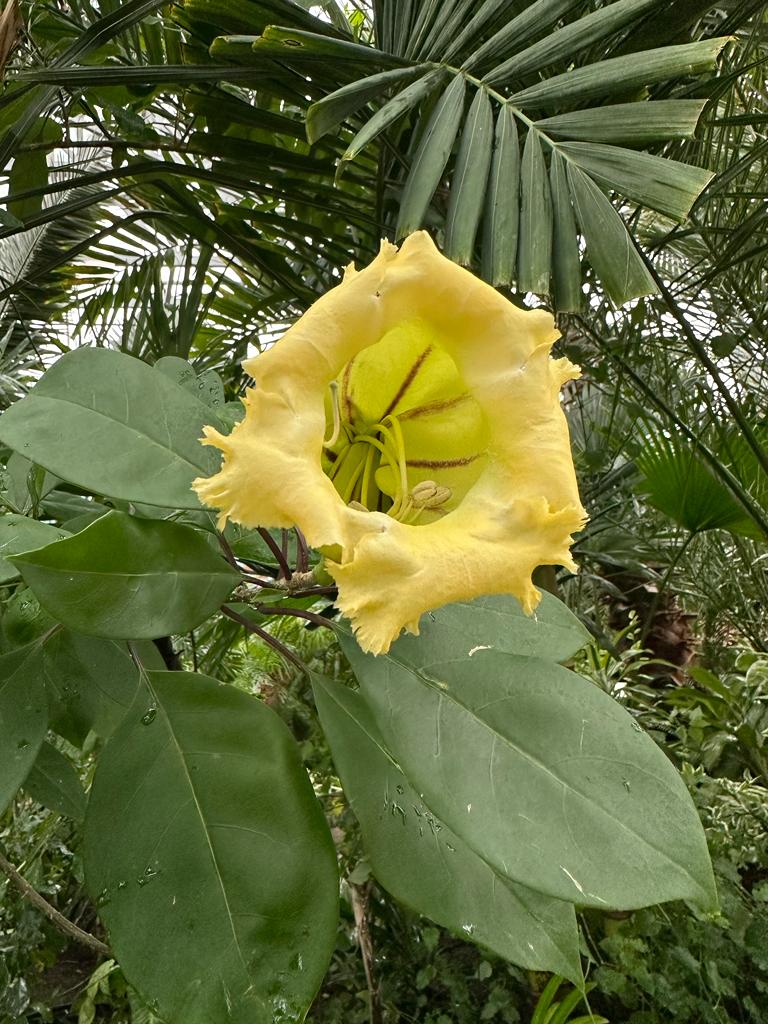 Гүлдері: Гүлдері кешке және түнде күшейетін тәтті банан-ваниль хош иісін шығарады. Олардың өте ұзақ гүлдену кезеңінде түсін өзгертудің қызықты ерекшелігі бар – алдымен олардың түсі ақ немесе кілегей түсті болады, содан кейін олар ашық сарыға айналады, ал солу қарсаңында олар қоңыр реңкке ие болады.